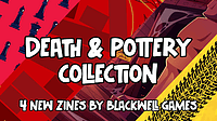 Hey everyone, I'm excited to announce that my 4 zine collection of games loosely themed around death goes live at 3:30pm BST today! https://www.kickstarter.com/projects/diamondblood/the-death-and-pott...